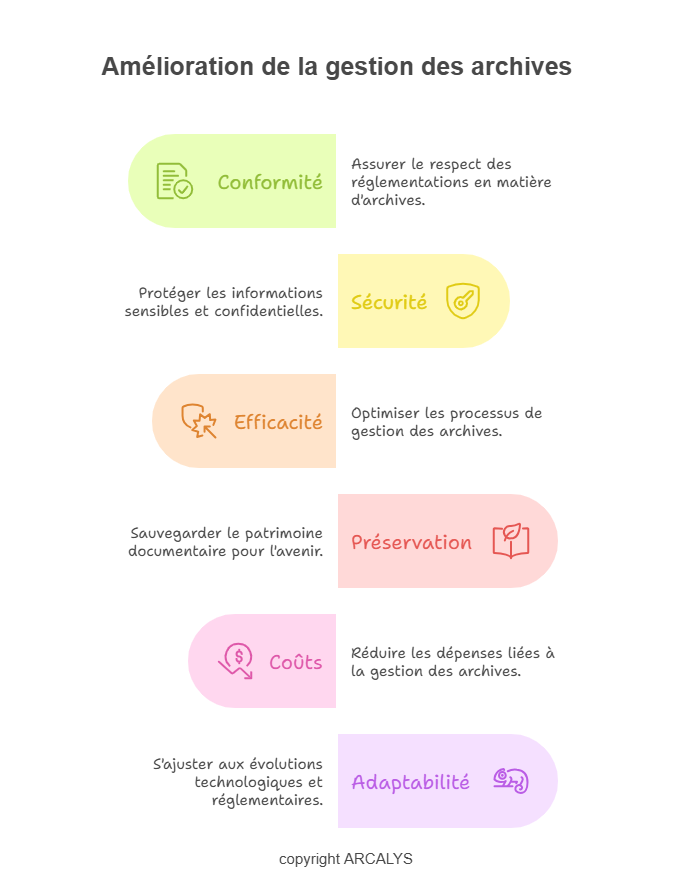 – Coûts : Réduire les dépenses liées à la gestion des archives ;