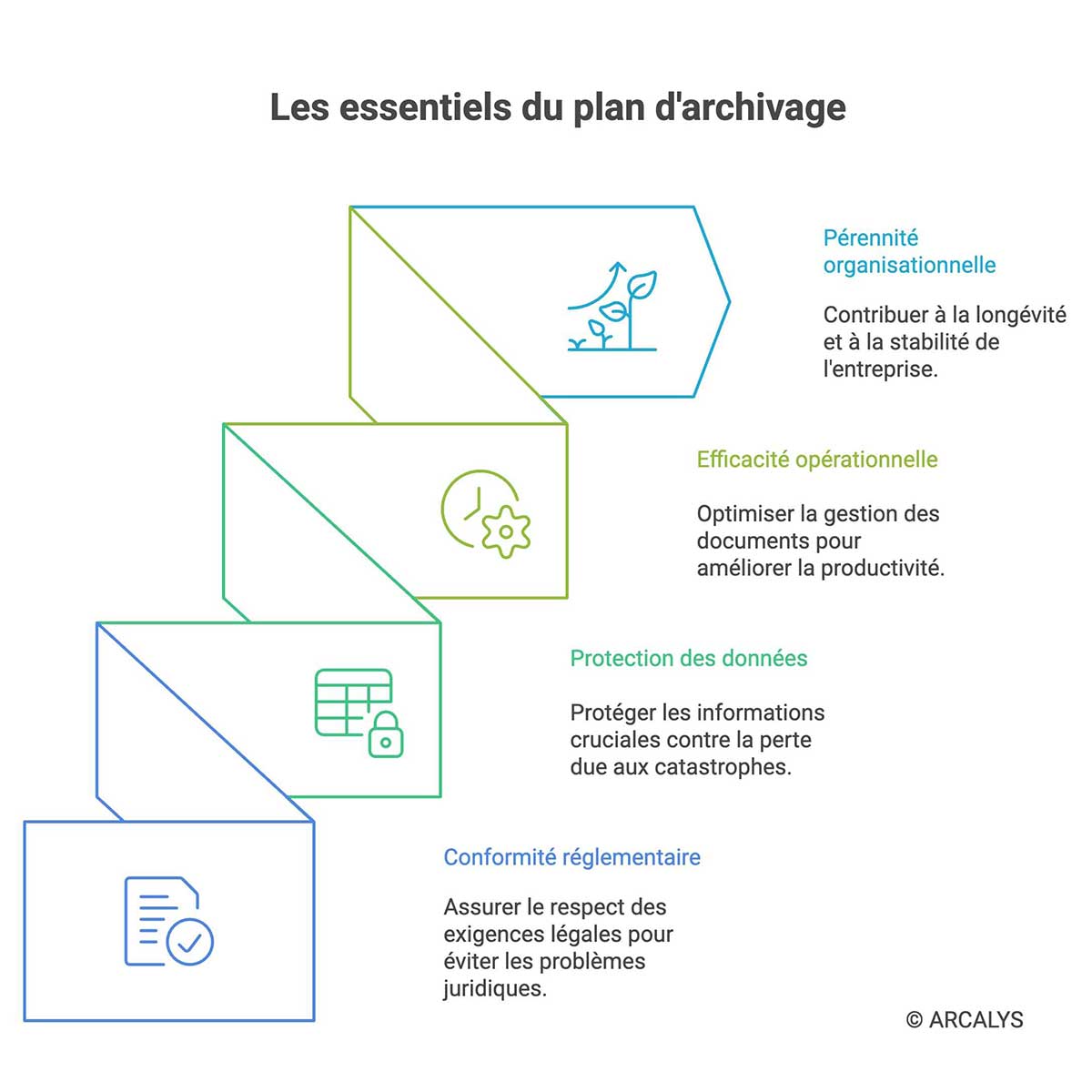 Un plan d’archivage est un système organisé et stratégique qui garantit que vos informations cruciales sont préservées de manière efficace, tout en restant facilement accessibles en cas de besoin.